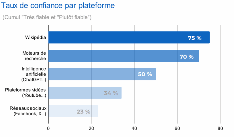 L’étude révèle une hiérarchie claire de la crédibilité sur Internet. Wikipédia s’impose comme le leader de la fiabilité, loin devant les nouveaux outils technologiques et les plateformes sociales.